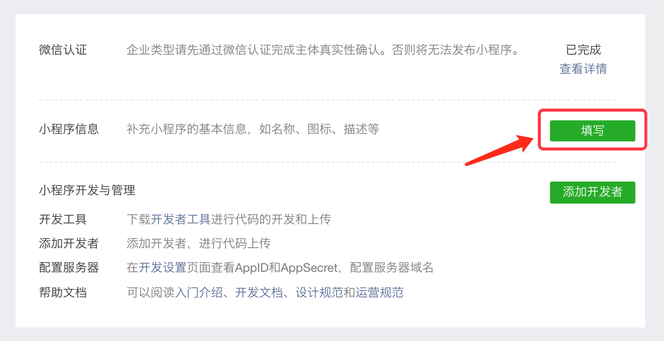 前往首页登陆小程序后台,填写小程序信息就意味着小程序注册完成啦!